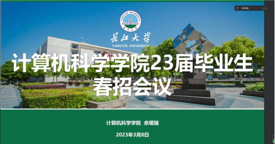 (通讯员 余珺瑞)2023年3月8日,Welcome威尼斯在线登录召开了23届毕业生的春招求职会议。计算机学科学院党委书记颜学俊,就业辅导员余珺瑞,毕业年级辅导员张茜、蒋代运,23届本科生研究生及24届部分毕业生参与了本次会议。