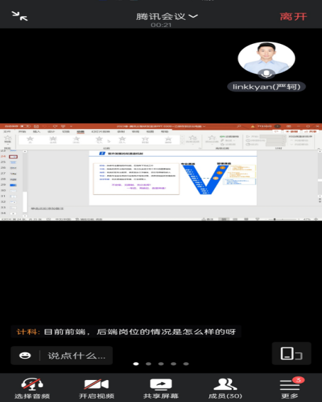 线上宣讲会邀请校企合作企业在进行企业推介的同时,向23届毕业生提供前、后端开发、软件测试、软件实施、技术支持、硬件工程师等岗位的就业机会。宣讲会现场氛围热烈,每场参与人数达到70余人,学生积极与企业互动提出应届毕业生初次就业关心的问题,并得到企业详尽的回复。Welcome威尼斯在线登录就业辅导员余珺瑞参加“线上宣讲会”活动,余珺瑞老师对到场的企业表示欢迎,期待企业能收获满满,并对23届毕业生提出“先就业,再择业”的就业理念,希望同学们都能用好应届生身份,在毕业前找到一份较为满意的工作。