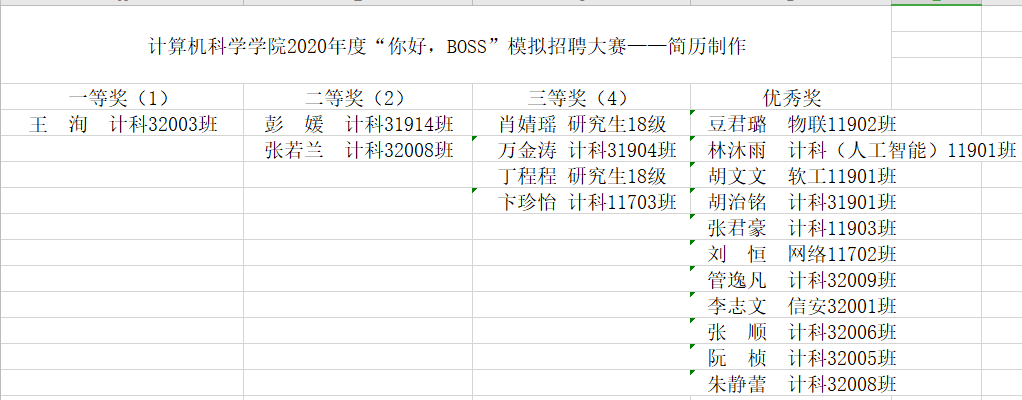 Welcome威尼斯在线登录2020年度“你好,BOSS”模拟招聘大赛——简历制作大赛圆满结束,感谢同学们的积极投稿。经过评委们慎重的评选,从投稿作品中选拔出了若干优秀作品分设为一、二、三等奖和优秀奖。