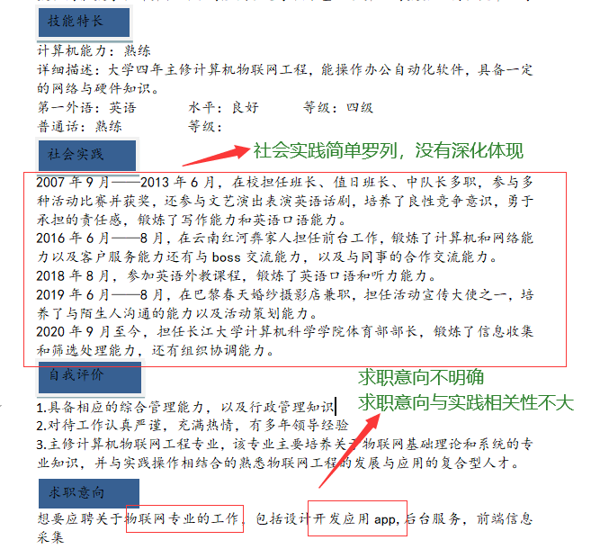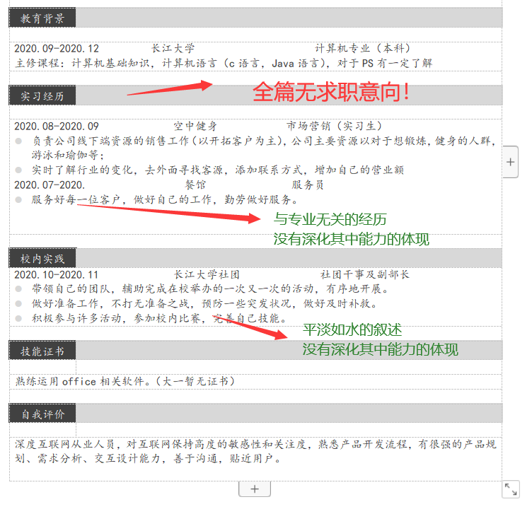 界面整洁,求职意向明确,求职意向与项目相关性强。模板整体需要修改,基本信息及教育背景文字间距需要修改。