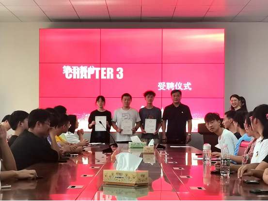会议伊始,由2020届计科学院学生组织代表谢军发言。他向大家分享了自己在学生会的工作经历以及心得体会,同时也对本届学生会全体成员寄予了深切的期望,希望学生会这个大家庭能够迈向新的高度。随后,张茜老师宣布计科学院2021届学生组织成员名单,由颜书记为学生组织成员颁发聘书。大家纷纷鼓掌,予以祝贺。接着,由新一届计科团委学生会执行主席张君豪发言。他提到了自己在学生会中所学到知识技能,所经历到的有趣的事情,所感悟到的体会经验,并且希望2021届计科团委学生会能够再接再厉,共创辉煌。紧接着,新一届学生组织部门负责人代表刘书妍发言。她首先向大家表示了感谢,并承诺:2021届计科学院学生组织全体成员定能不负众望,以绝对真诚的心为计科学子服务的信心和决心。