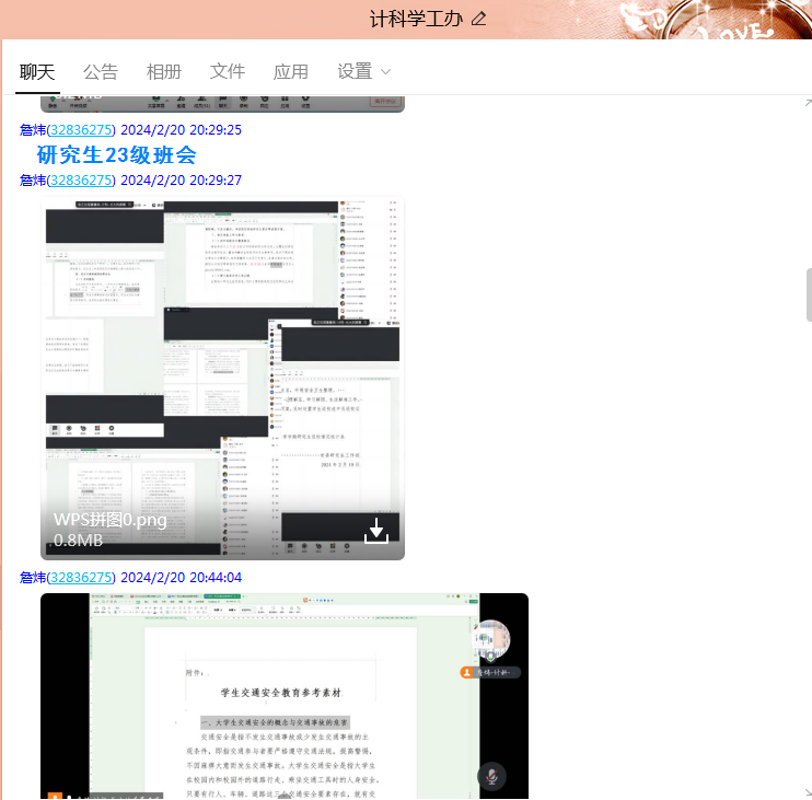 新的学期即将开始,为确保学院2024 年春季学期开学和学生返校工作平稳有序开展,根据学工处下发《关于做好2024年春季学期开学工作准备的通知》精神,学院于2024年2月19日—22日期间,先后召开了春季开学班主任及全体研究生和本科生的安全教育主题班会。 在班会中,全体班主任与同学们一起学习了《关于做好2024年春季学期开学工作准备的通知》,对学生提前返校、延迟返校的申请及审批的要求都提出了具体的要求,同时还时时向全体学生发布最新的天气预报,叮嘱同学们注意返校途中的交通安全。