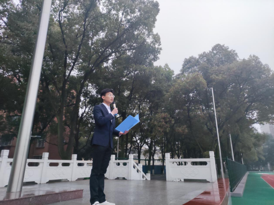 仪式第二项,学生代表——计科类32001班的刘克飞同学作国旗下讲话。他由春节期间家人团聚的幸福美满,联想到依旧在岗位上坚持的解放军战士、警察、医护工作人员等的无私奋献,呼吁我们作为社会的一员,应该珍惜当下和平安宁的生活。对于新学期的学习,刘克飞同学也提出了他的几点建议:面对新学期更高专业要求的学习,务必做好好课堂学习和课后复习的时间管理,希望同学们对自己的学习有清晰的计划和目标,勤于学习,善于思考。