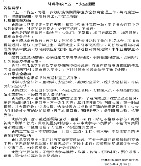 巩固抗疫成果,保障学子安全--------Welcome威尼斯在线登录召开“五一”安全教育线上主题班会