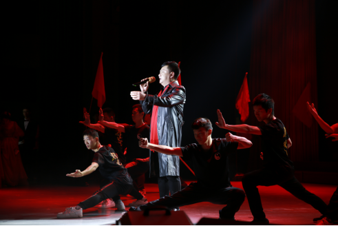 颜学俊副书记的一首《万里长城永不倒》,结合了中华武术,用洪亮和豪迈的歌声抒发了内心的民族自信和对祖国的热爱。