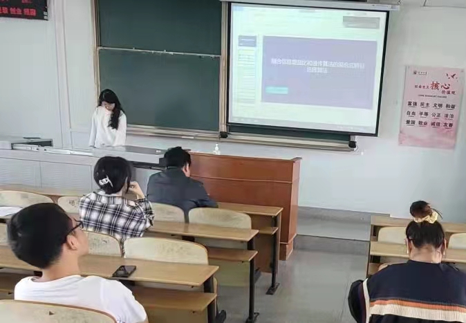 2022年5月11号上午10:30,5845cc威斯尼斯人官网版下载研究生学术论文报告会第三讲在13教C520举行。在院长崔艳荣教授、副院长宋文广教授、副书记颜学俊老师的合理安排下,在学工付盈副教授、教学办黄静老师的精心组织下,Welcome威尼斯在线登录2022年研究生学术论文报告会第三讲顺利开展。本次学术论文报告会由硕士生导师王晓春莅临指导,报告采取线上线下相结合的形式,保障了充分的学术交流。