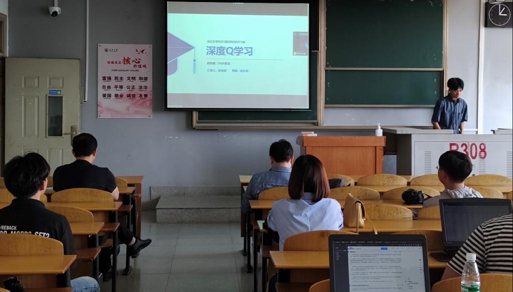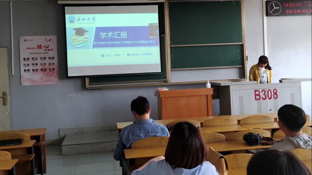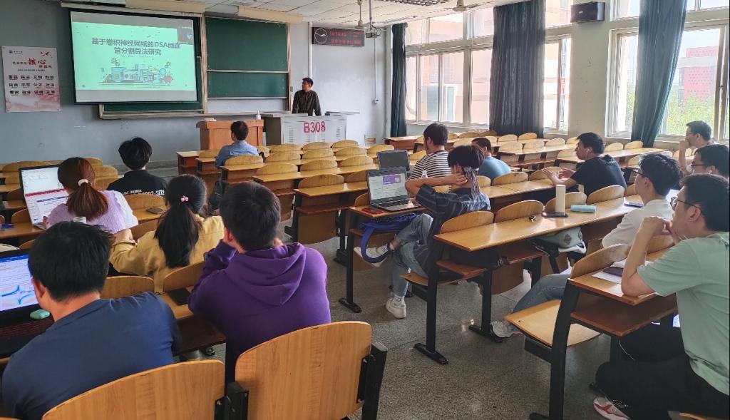 5845cc威斯尼斯人官网版下载9位研究生依次登台演讲,分别围绕各自的研究方向,为同学们分享了9个课题:基于属性加权朴素贝叶斯算法的OTSU图像分割方法,基于深度学习的无监督红外图像与可见光图像融合算法,深度Q学习-DQN算法原理,基于Bp神经网络的乳腺癌候选药选择,改进蚁群算法在路径优化中的应用,基于GAN~LSTM的连续管振动分析,基于传统双目立体视觉的车辆测距和目标识别研究,基于卷积神经网络的DSA脑血管分割算法研究,时序结构下工人动作预测的方法研究等内容。学术论文报告会已经成为同学们知识共享和传播的一种重要方式,在演讲过程中,导师与听众和演讲人针对相关研究成果互动、探讨。每名研究生演讲完后,四位导师从多角度对演讲学生的汇报进行仔细点评,对其研究内容可能遇到的科研困难进行指导,通过点评有效促进了研究生的成长。