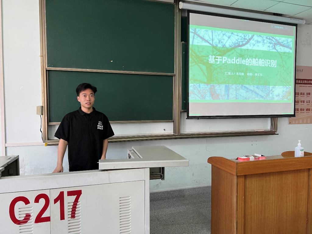 5845cc威斯尼斯人官网版下载8位研究生依次登台演讲,分别围绕各自的研究方向,为同学们分享了8个课题:基于DeeplabV3+的叶片病害分割、船舶相似度识别、船舶目标检测、基于paddle的船舶识别、基于改进YOLOv5的算法研究、深度置信网络DBN、航道视频拼接融合技术、图像分类的方法研究与应用。