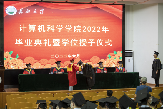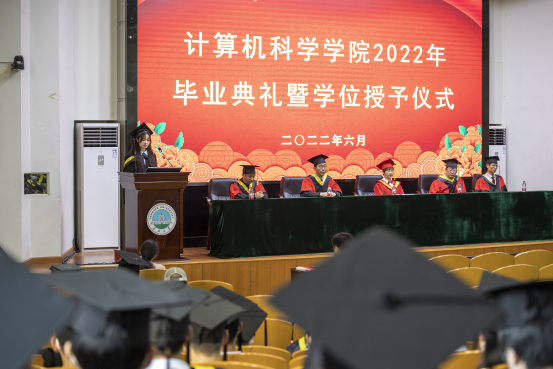 典礼开始前,大屏幕循环播放着毕业生纪念册视频,回顾着大家在校的美好生活。在张茜老师宣读HSE安全提示后,伴随着激昂的国歌,毕业典礼正式开始。首先,学院党委副书记颜学俊宣读了2022届优秀毕业生表彰文件,今年全院共有62名本科毕业生和6名研究生被评为“长江大学优秀毕业生”。