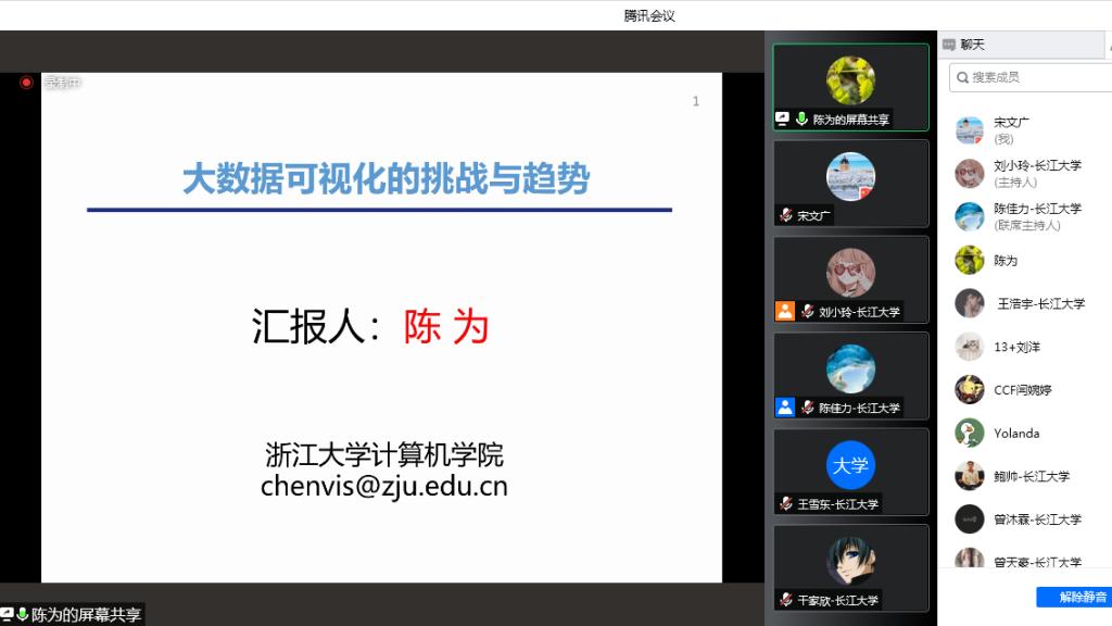 陈为教授以“大数据可视化的挑战与机遇”为主题,向我院师生介绍了数据可视化的基本概念以及大数据时代下的可视分析的内涵,阐述可视化学术界的近期关注重点,并展示面向金融、安全、智慧地球、商业智能、数据新闻等应用的可视分析案例。