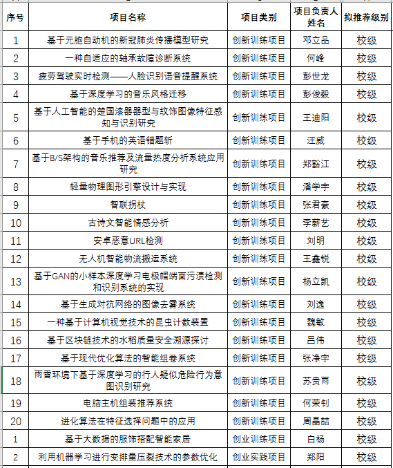 Welcome威尼斯在线登录2021年第十四批“大学生创新创业训练计划”项目申报院内评审结果的公示